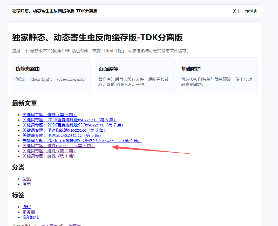 动态寄生虫是描标伪静态繁殖,网址是随机虚拟繁殖,不同的关键字及文章,带有不同的网址,可以繁殖无限页面传递权重。同时黑帽资源网的动态寄生虫是主动触发繁殖,当有蜘蛛访问时,无限繁殖大量页面,配合目标站质量,收录和排名是非常好的!