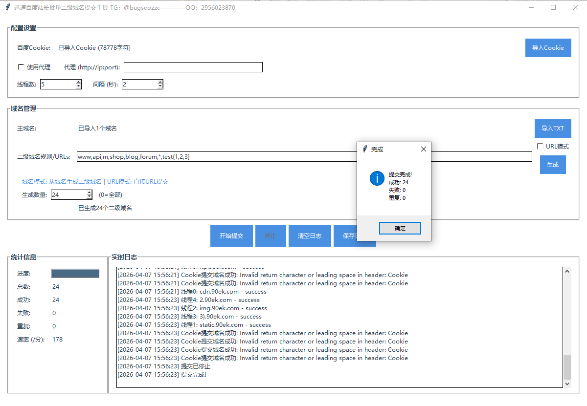 百度站长批量二级域名提交工具