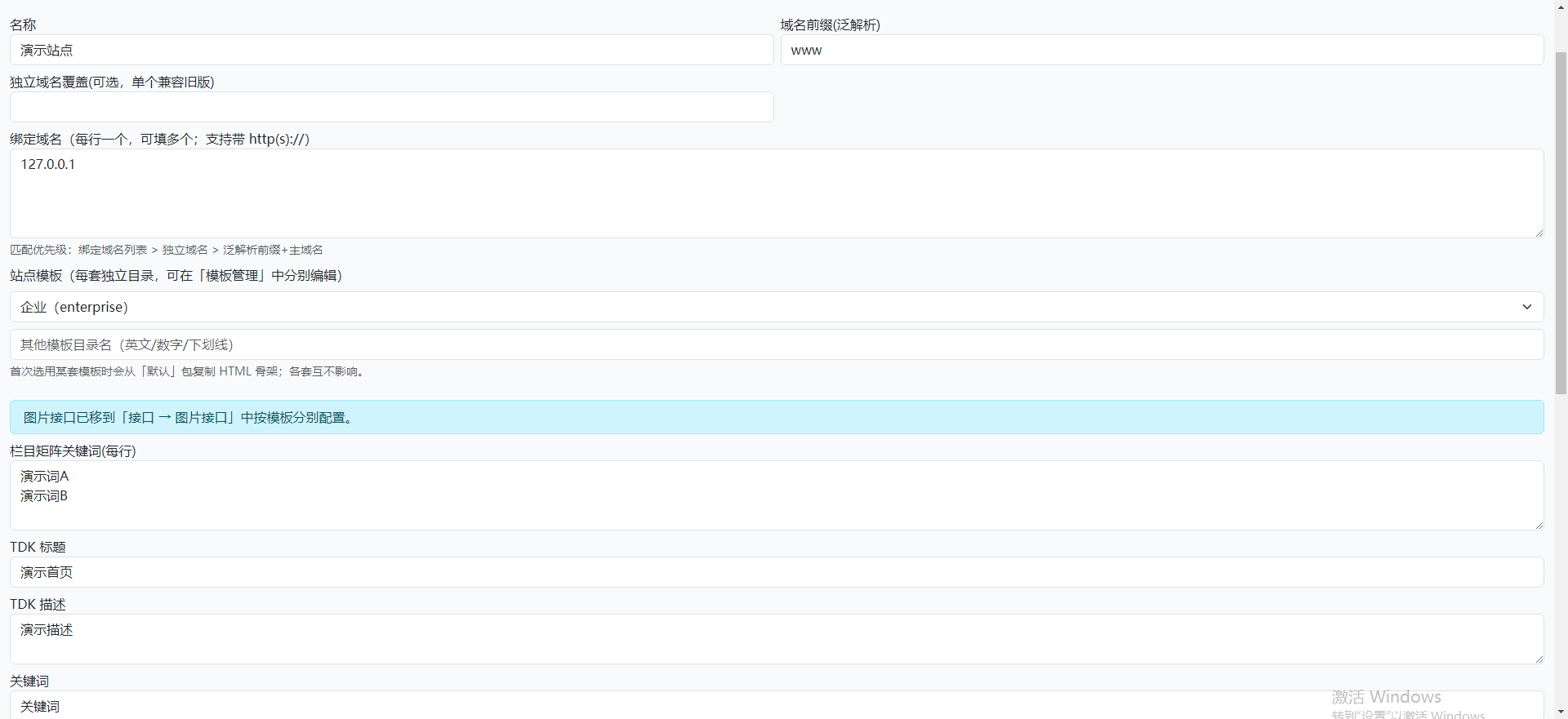 data/就能带走全部数据。多站点站群:一个后台管理多个站点,支持单域名/多域名绑定、泛域名前缀匹配。
